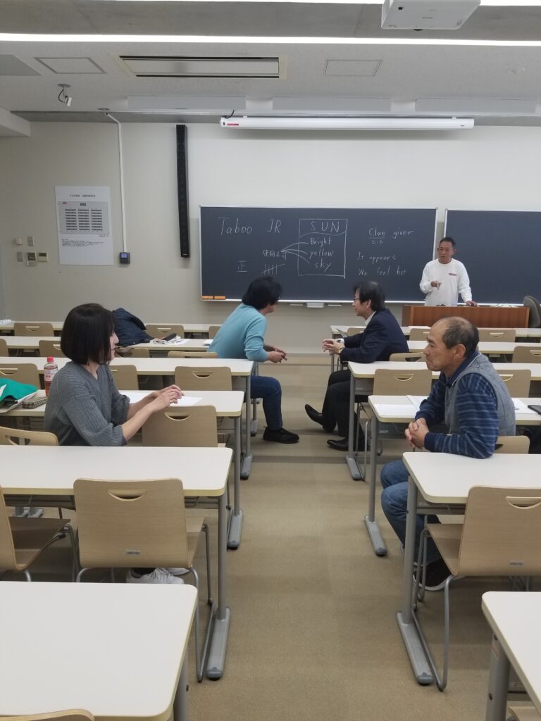 講座の冒頭では参加者同士がリラックスして受講できることを目ざし、Taboo Jr.というカードゲームを用いてウォームアップもしてもらいましたが、かなり笑顔がみられました。 参加者は4名のみでしたが、全員が積極的に受講してくれた講座となりました。