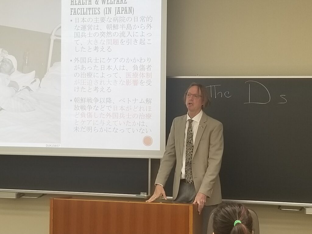 10月25日(土)に第6回あきない塾「オーストラリア王立陸軍兵士オスカーが見た朝鮮戦争と占領日本における経験1945~1952」を開催いたしました。歴史家の義務は,記録されていない人々の記憶を代弁することのみならず,通常では聞かれない人々の話を聞き,それを伝える義務もあります。敗戦後の朝鮮戦争とかかわりがある「占領史」も、その1つの事例であります。