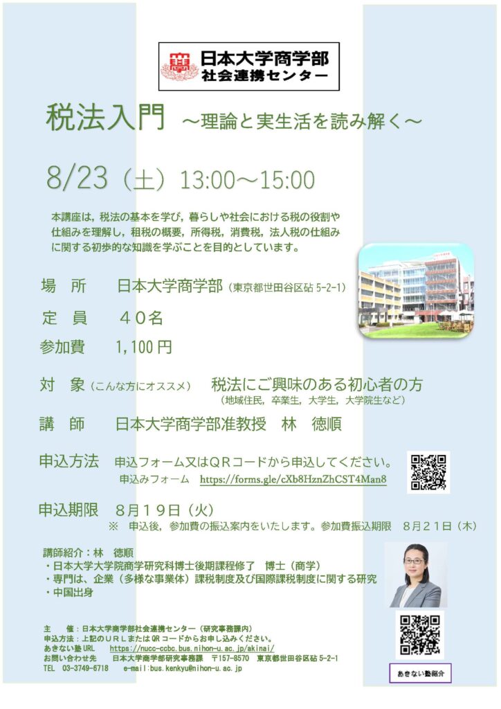 2 場 所 日本大学商学部(教室は申込後にお知らせいたします)
