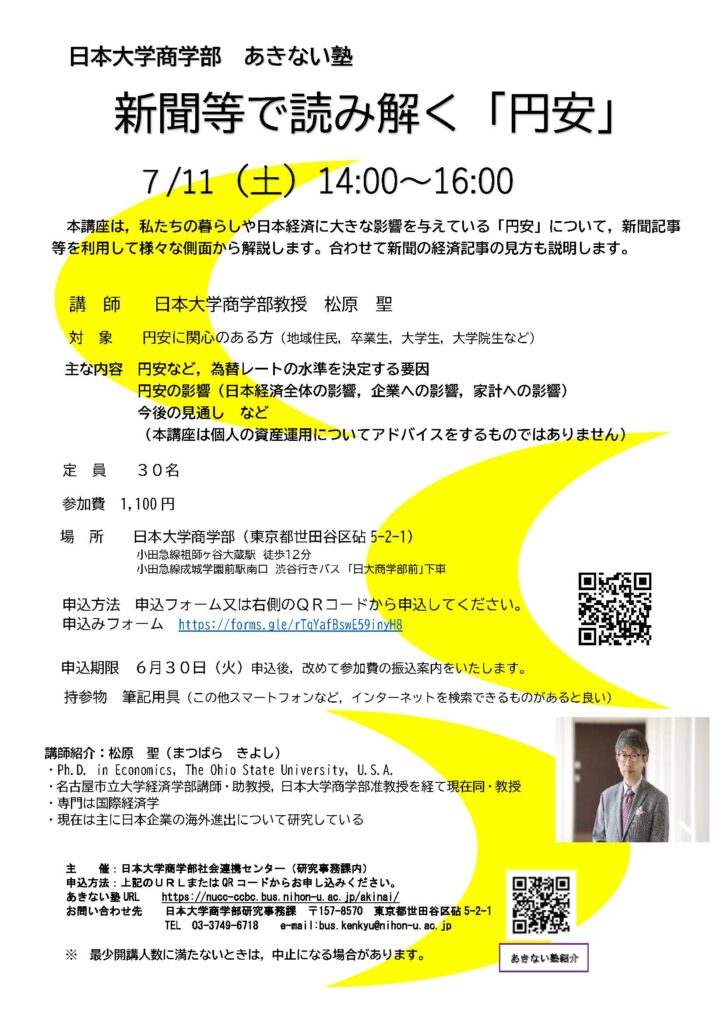 本講座は,私たちの暮らしや日本経済に大きな影響を与えている「円安」について,新聞記事等を利用して様々な側面から解説します。合わせて新聞の経済記事の見方も説明します。
